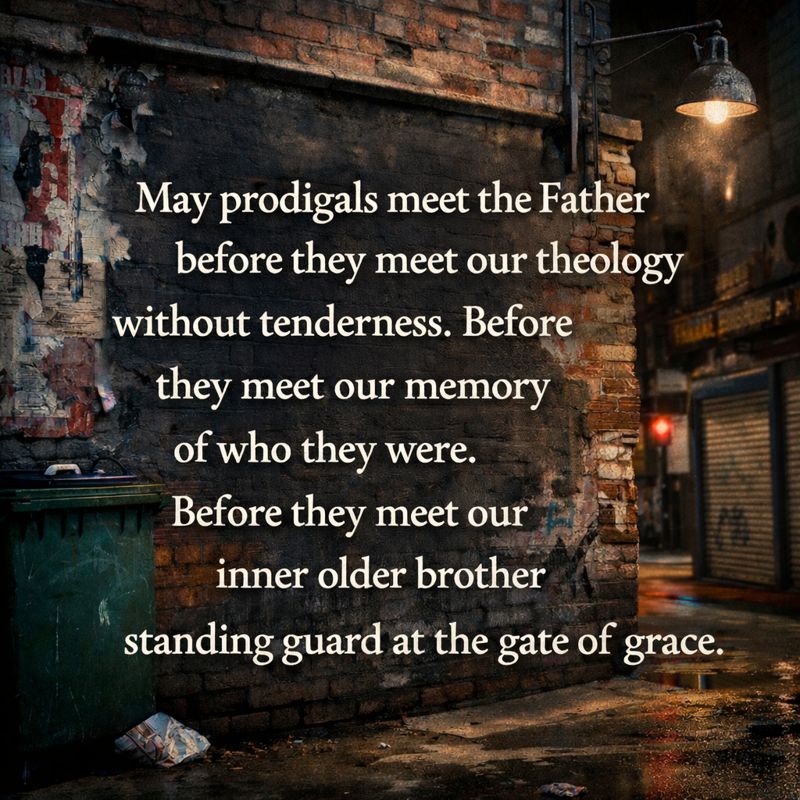 When prodigals return, may they meet the Father before they meet us; and may we learn, in time, to sound more like celebration and less like suspicion.